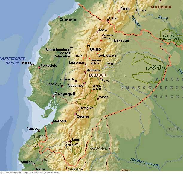 | Ecuador liegt im Nordwesten Südamerikas und wird im Norden von Kolumbien,