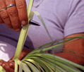 Blätter der Palme werden in Wasser gekocht und erfahrene Handwerker